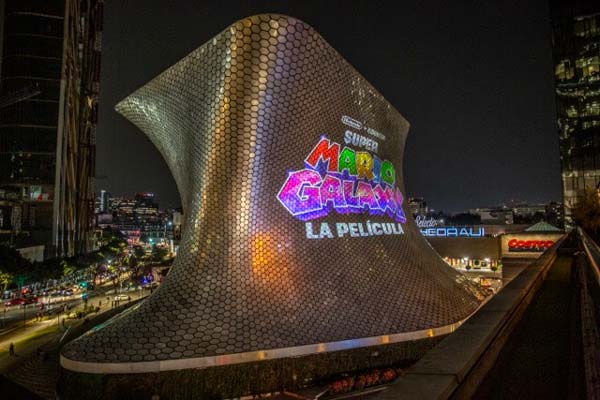 Para celebrar el Mar10 Day, se proyectó el tráiler final de Super Mario Galaxy: La Película en la fachada del Museo Soumaya