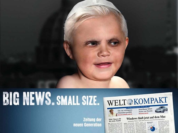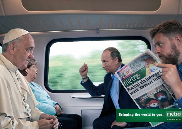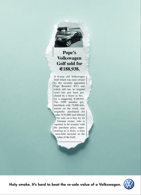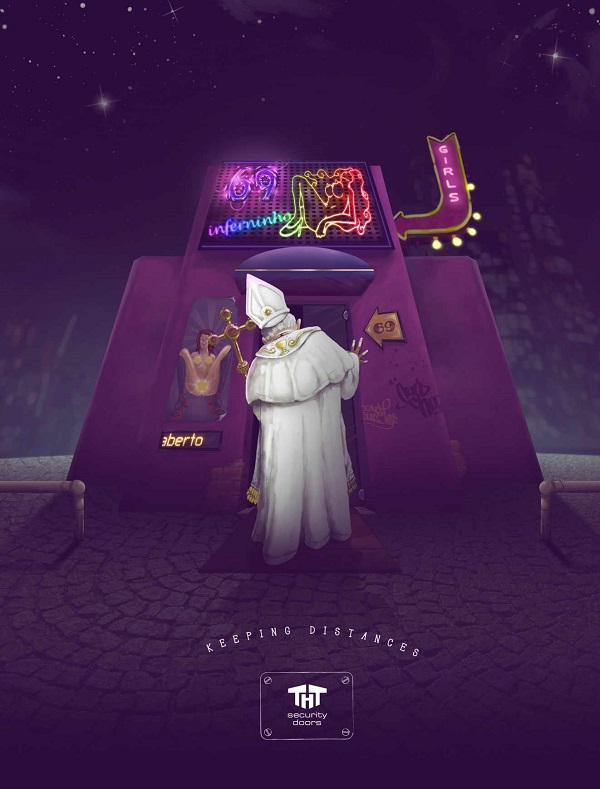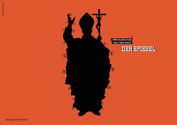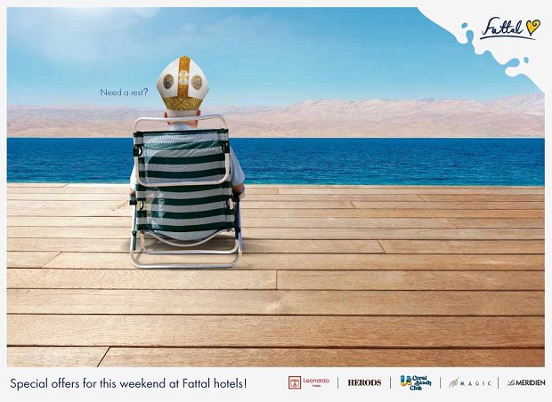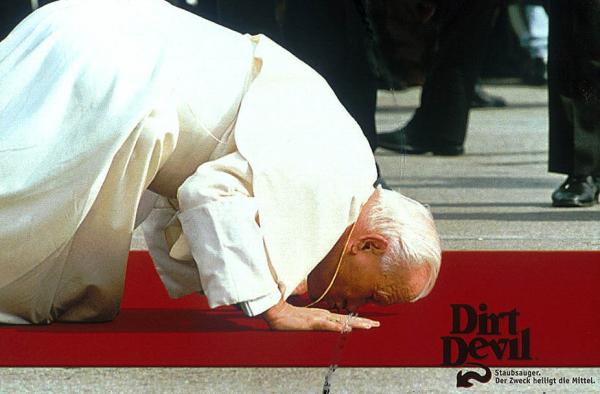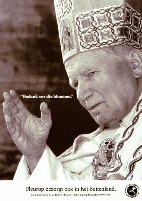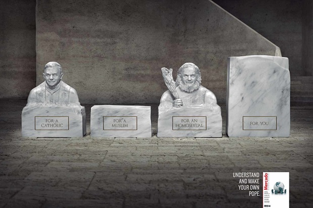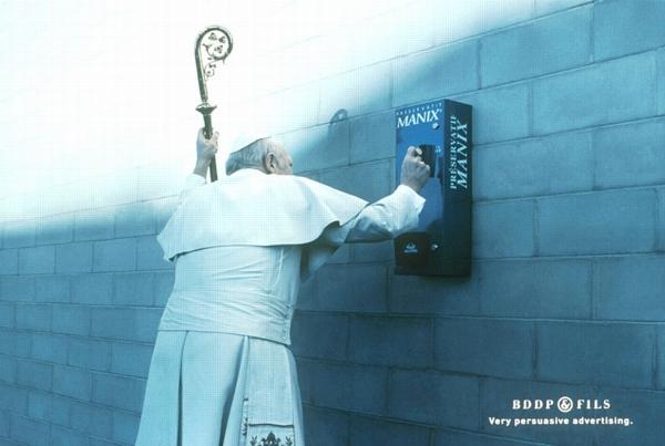 Su presencia «divina» ha sido utilizada en la publicidad. Recolectamos veinte carteles publicitarios que se inspiran en el Santo Padre -no importa si es representado por Francisco, Benedicto XVI o Juan Pablo II- para promocionar sus productos y servicios.