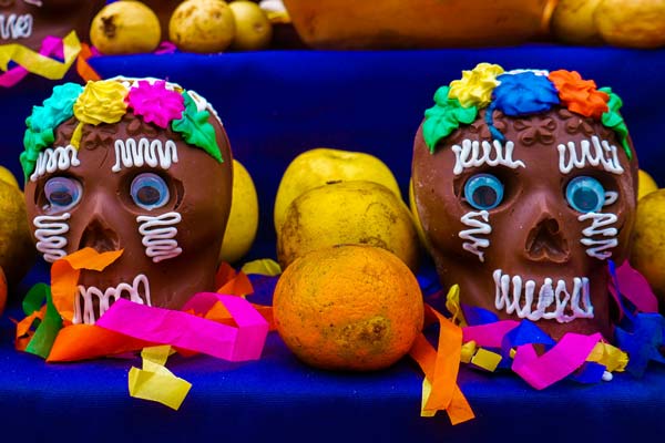 • Calaveritas: Pueden ser de chocolate o de azúcar, las cuales, acorde a las culturas mesoamericanas, representan la muerte.