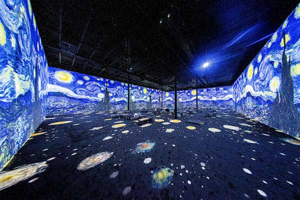 Esta experiencia ilumina y transforma un espacio físico único en una exhibición completamente inmersiva, donde el trabajo de Van Gogh se apodera de las paredes de más de 10 metros de altura a través de proyecciones digitales de vanguardia de 360°.