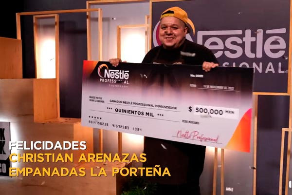 Durante el evento de cierre, Nestlé Professional anunció al ganador del concurso, el tamaulipeco Christian Arenazas de Empanadas La Porteña, quien se hizo acreedor a un premio de 500 mil pesos para crecer su negocio. Además, reconoció a los otros cinco finalistas del concurso: Suerte de Churro, Make Bakery, Dulate Minipostres, Meraki Cheesecake Japonés y Restaurante Atelier, quienes destacaron de entre las más de 800 iniciativas que se recibieron de toda la República Mexicana, convirtiendo a esta primera edición en todo un éxito, constatando la creatividad y ganas de crecer de los micronegocios mexicanos.