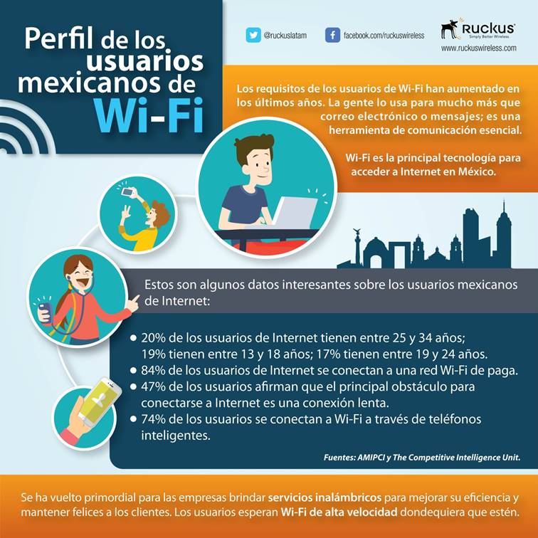 En México, el wi-fi es la principal tecnología para acceder a internet. Por ello, Ruckus elaboró una infografía con cifras interesantes sobre el perfil de los usuarios de esta tecnología en nuestro país.