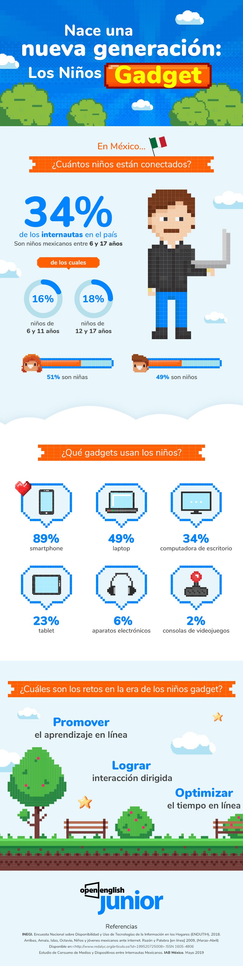 Open English Junior nos comparte la siguiente información basada en una serie de datos del INEGI, del Estudio de Consumo de Medios Digitales 2019 y del estudio Niños y Jóvenes Mexicanos ante Internet con datos para México.