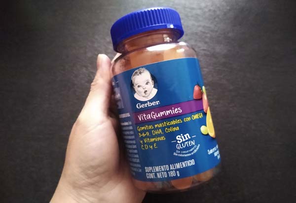 Gerber VitaGummies es un multivitamínico en forma de gomitas comestibles, cuyos sabores son naturales provenientes de las frutas y no contienen colorantes artificiales. La dosis recomendada es de dos gomitas al día que contienen Omega 3, 6 y 9, además de DHA, Colina y vitaminas C, D y E. No contiene gluten ni conservadores y puede ser consumido por niños a partir de los 6 años.