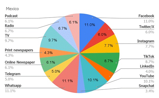 Los mexicanos están optando cada vez más en TikTok (9.4%) e Instagram (9%) como fuentes de información confiables. Más allá del entretenimiento, estas plataformas se han convertido en espacios donde los usuarios acceden a noticias, tendencias y contenidos relevantes de manera inmediata y personalizada. La rapidez y el formato visual de estas redes sociales están cambiando la manera en que los mexicanos se informan, marcando una nueva etapa en el consumo de medios digitales.