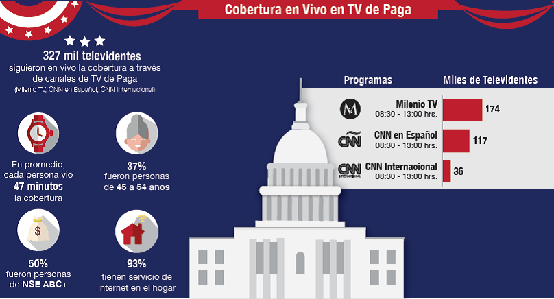 - 327 mil televidentes siguieron en vivo la cobertura a través de canales de TV de Paga (Milenio TV, CNN en Español, CNN Internacional)