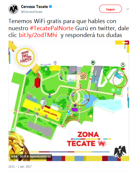 En todo festival de música hay múltiples preguntas que nacen entre los asistentes: ¿qué ver?, ¿en dónde comer?, ¿cómo llegar?, etcétera, así que a Tecate, principal patrocinador del festival musical #PalNorte, se le ocurrió brindar un servicio para que los asistentes obtuvieran la información que cada invitado necesitara utilizando un sistema automatizado de chatbot mediante mensaje directo llamado Gurú.