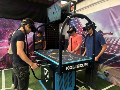 Koliseum Soccer VR: Una reinvención futurista del futbolito tradicional, ahora en un entorno de realidad virtual totalmente inmersivo. Perfecto para entretenimiento social, espacios de retail y eventos corporativos.- Whack-a-Light: Una propuesta dinámica y competitiva que reinterpreta los juegos de reacción rápida para la era de la hiperparticipación.