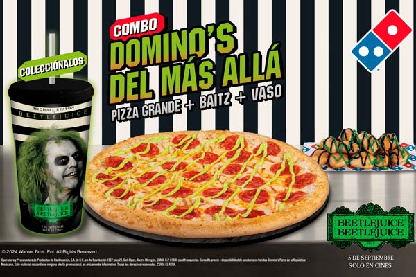 Esta plataforma de productos estará disponible del 9 de septiembre al 3 de noviembre y busca hacer alusión a la inusual estética de Beetlejuice y resaltar la inigualable esencia de Domino’s, que es reconocida por crear productos que cautivan a consumidores de todas las edades a través de lanzamientos divertidos e innovadores.