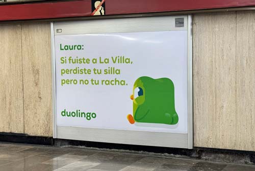 Ciudad de México.- ¿Te imaginas a una marca que te hable por tu nombre, en el metro, en Instagram o mientras caminas por tu colonia un domingo cualquiera? Esa es la premisa de “Duo is Watching”, la nueva campaña de Duolingo, desarrollada por la Agencia Montalvo, que lleva la hiperpersonalización a un nuevo nivel al integrarla a la vida cotidiana de cada colonia de la CDMX.