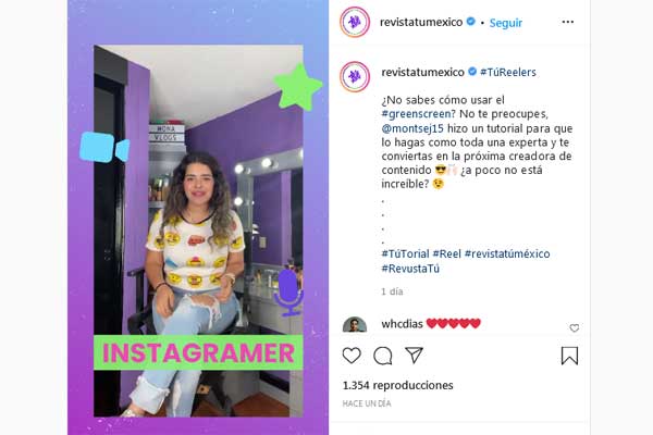 Otro ejemplo de Instagram es la asociación con la revista Tú para crear #Túreelers, que tiene como finalidad que influencers y creadores de contenido realicen contenido que inspire a los adolescentes a expresarse creativamente a través de Reels, enseñándoles con videos cómo crearlos.
