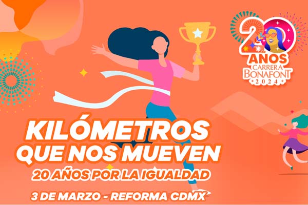 La Carrera Bonafont, de la mano de esta alianza, nació para crear conciencia y dar visibilidad a las causas que necesitan ser apoyadas como lo es la igualdad de género. Este 3 de marzo, celebrando #20AñosPorLaIgualdad, 36 mil mujeres recorrerán Paseo de la Reforma y por cada kilómetro recorrido se recaudarán fondos para seguir apoyando proyectos de más emprendedoras.